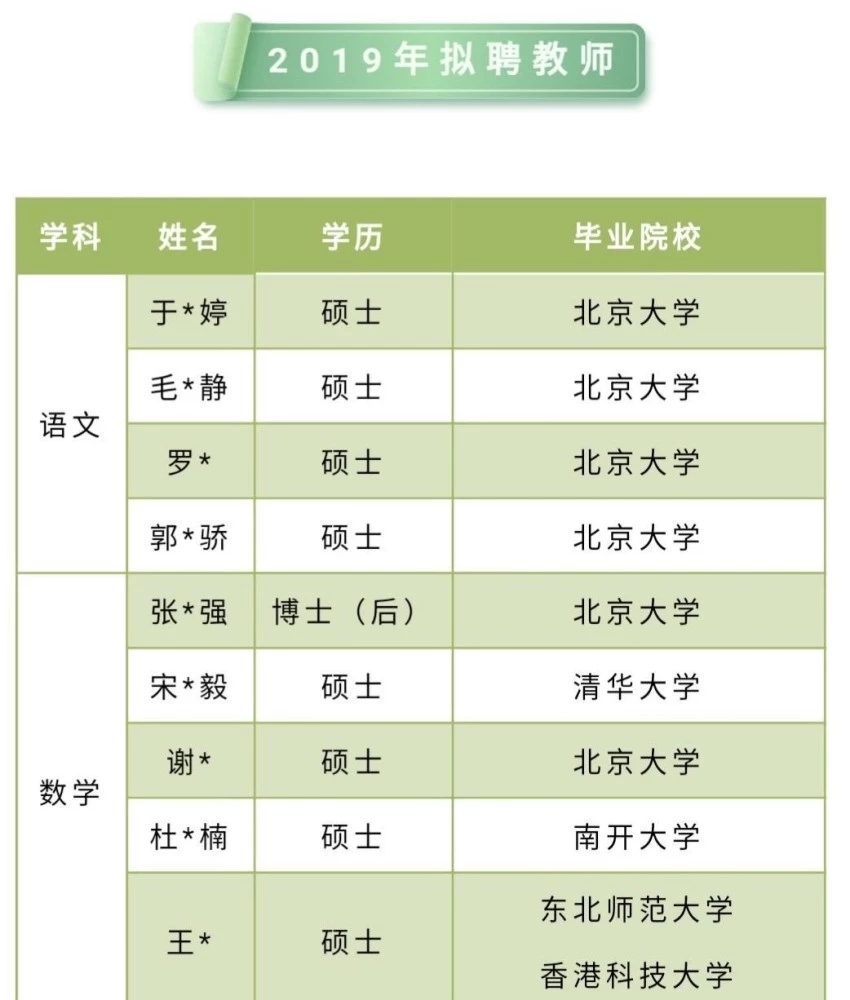 日前,深圳老牌名校深圳中学公布了其2019年拟招聘的35名教师名单,其中清华、北大的毕业生就有20人,还有1人毕业于哈佛大学,且35人均是研究生学历,其中8人是博士(3名博士后)。