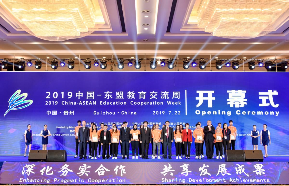 GET学生创业比赛优胜者在中国-东盟教育交流周开幕式上领奖
