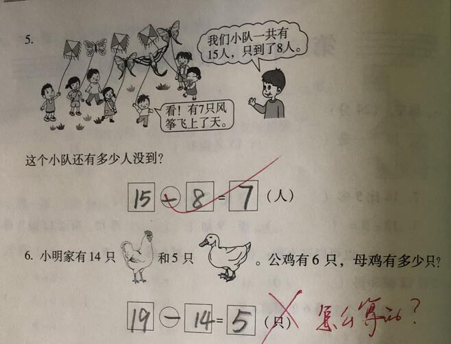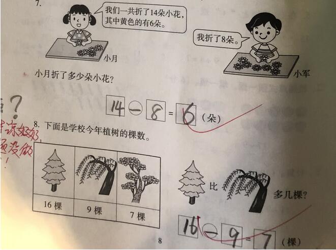 下面是一年级小学生数学测试的试卷照片,我们一起来看看他们是怎么答题的。