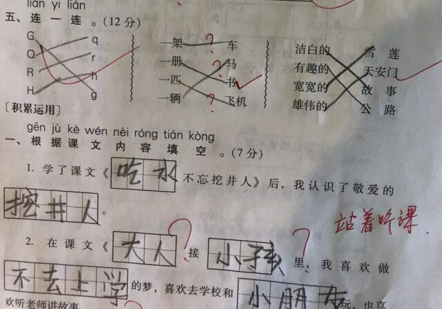 小学生填空很“有才”,爸爸追了3条街,老师:你站着听课